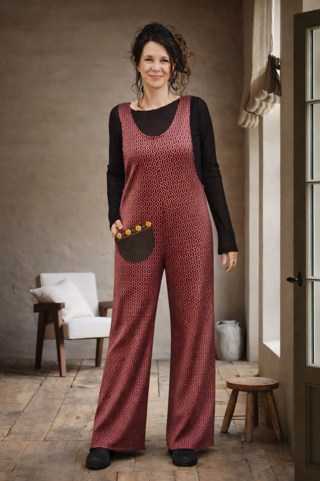 Padmani carries the energy of the lotus. Of opening, blooming, and moving freely. The pink hue and retro pattern refer to softness and playfulness, to a time when expression and freedom were self-evident. This jumpsuit is intended for women who follow their own rhythm and are not limited by form or expectation.