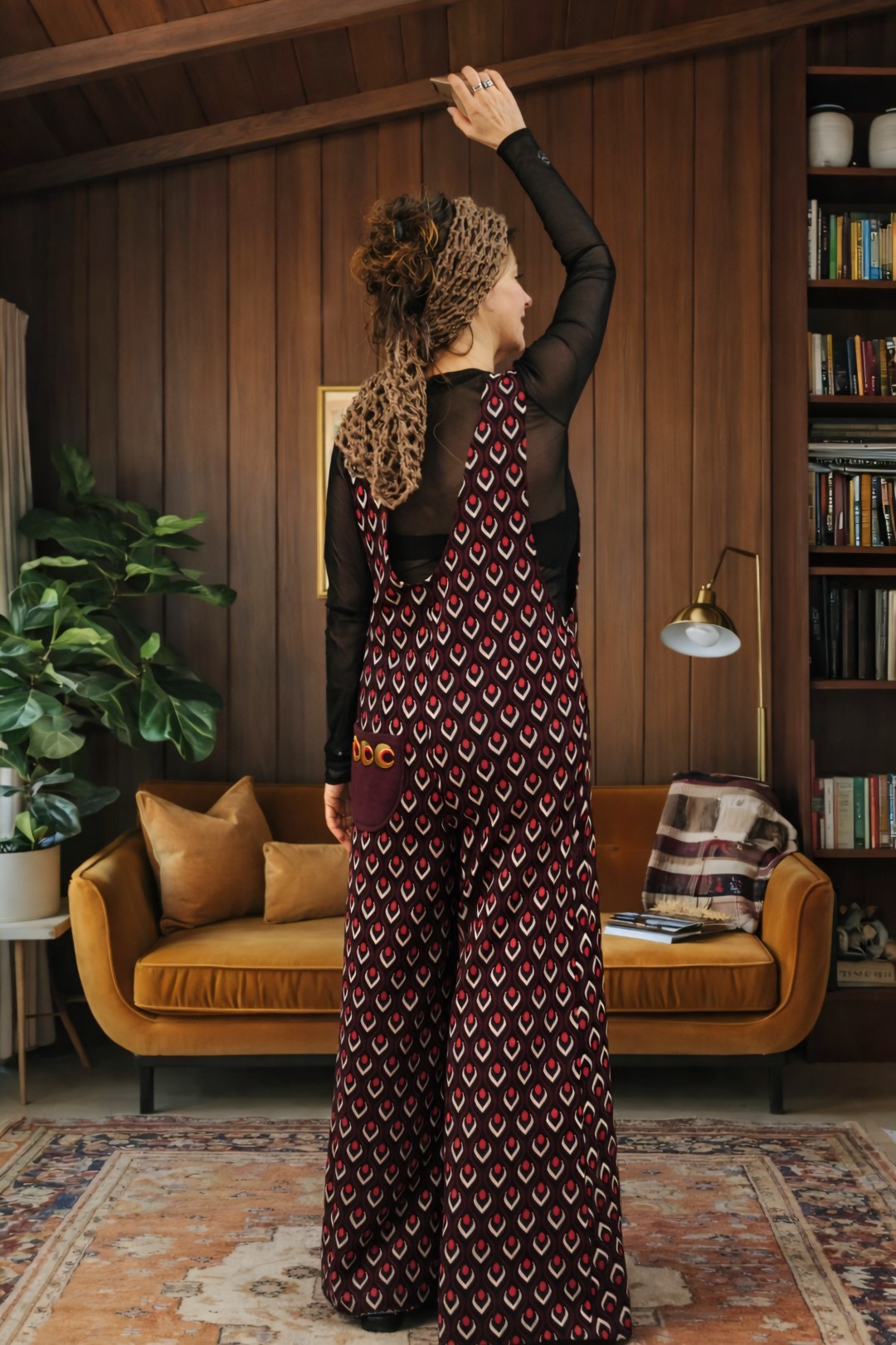 Ninyhe is a jumpsuit with character. A distinct seventies print, a feminine but relaxed fit, and a fabric that moves with you. It feels sturdy and soft at the same time, as if it’s wearing you instead of the other way around. A suit to take up space in, without forcing anything.