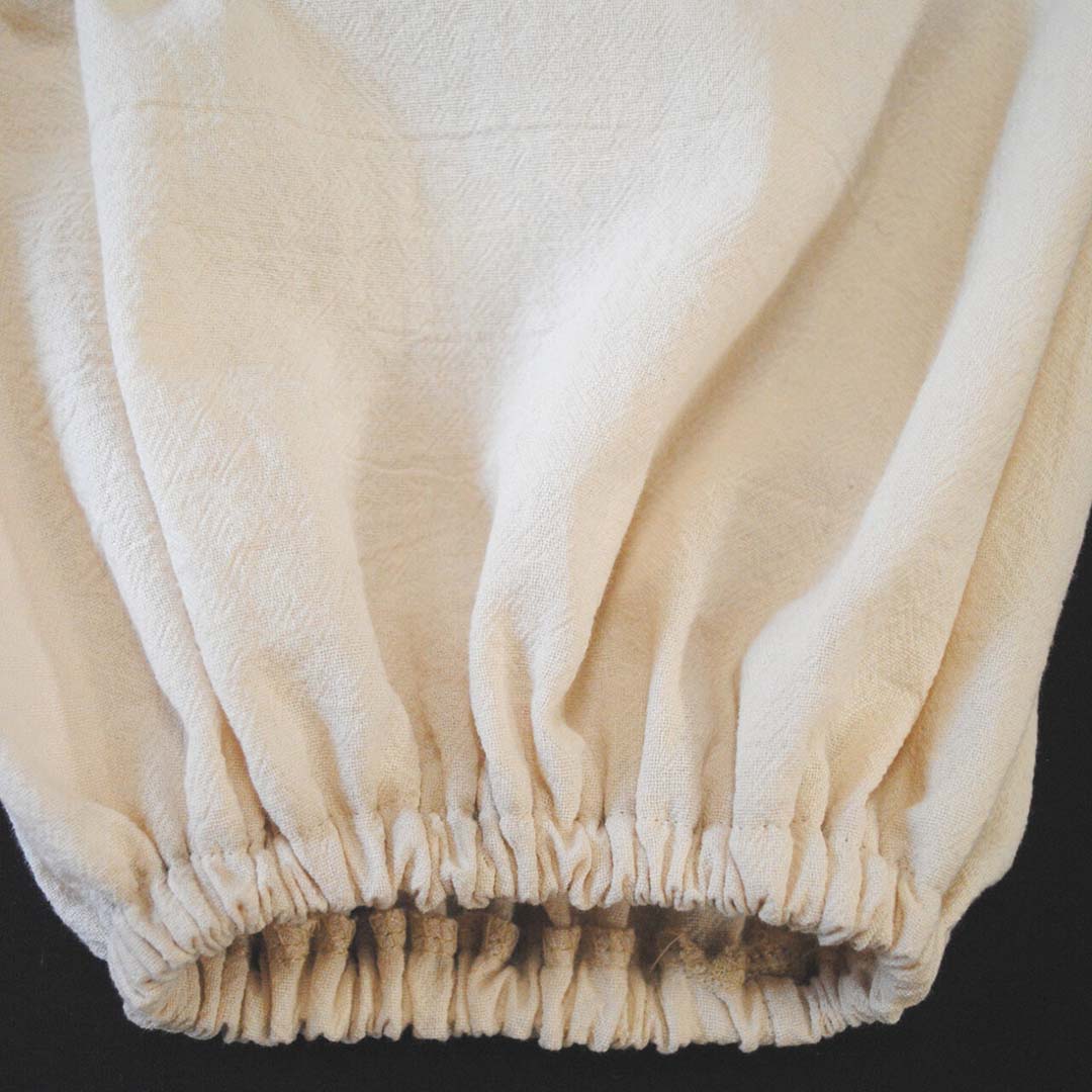 Shiwaliks exudes movement and lightness. The airy cotton fabric, the loose fit, and the puff effect at the legs provide freedom and a sense of playful elegance. Every pleat and fold reveals the magic of movement, an ode to dancing and life.