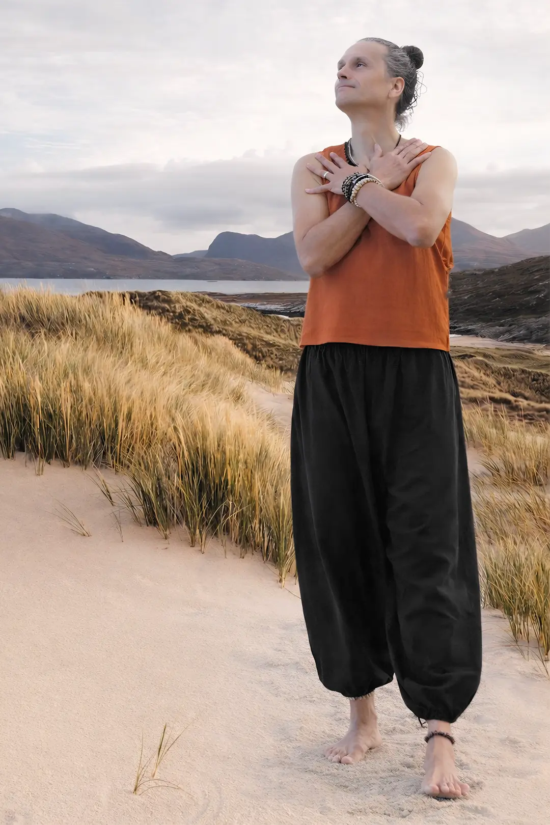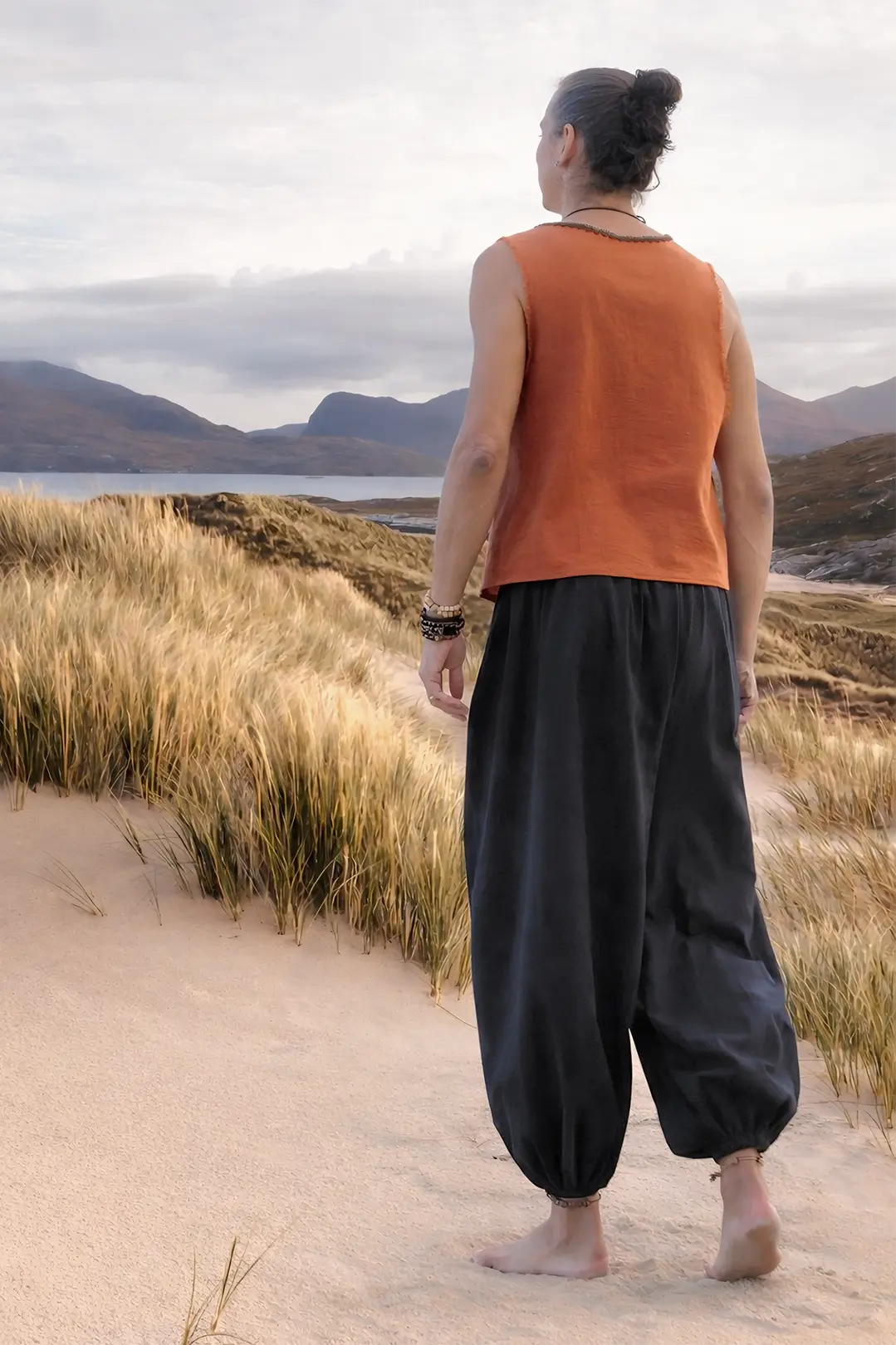 Rohan is een ode aan eenvoud met karakter. De warme brique kleur straalt kracht en diepte uit, terwijl het gewassen katoen soepel om het lichaam valt met dat kenmerkende natuurlijke gevoel. De subtiele rafels langs de armopeningen geven de top een stoere, doorleefde rand, en de hals is verfijnd afgewerkt met een vintage sierband… een klein, artistiek accent dat de tanktop verheft tot een statement.