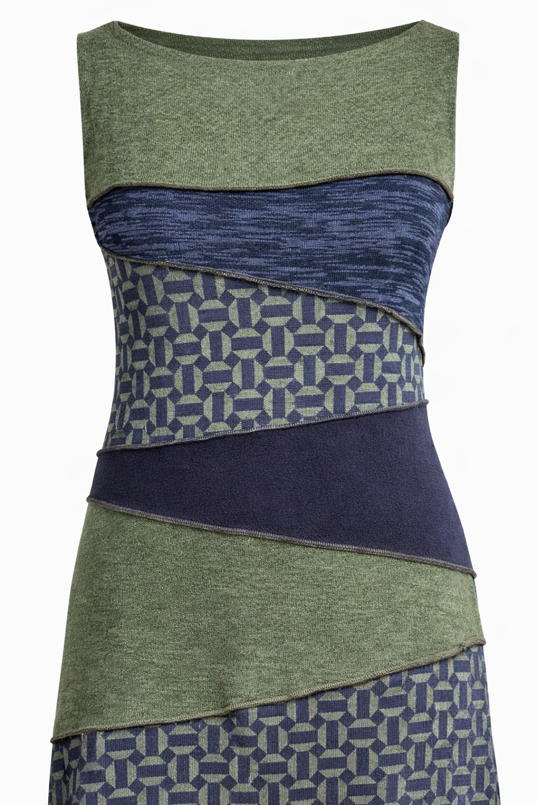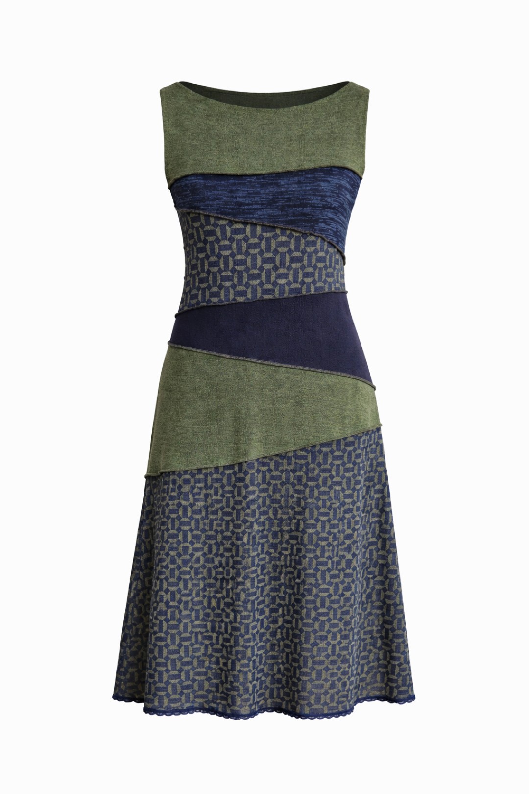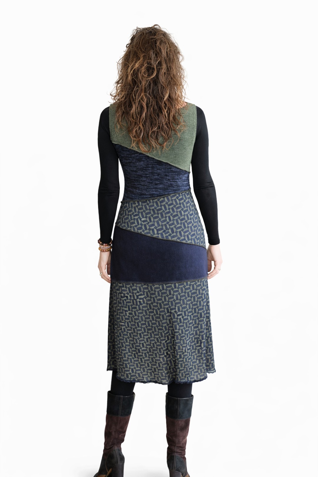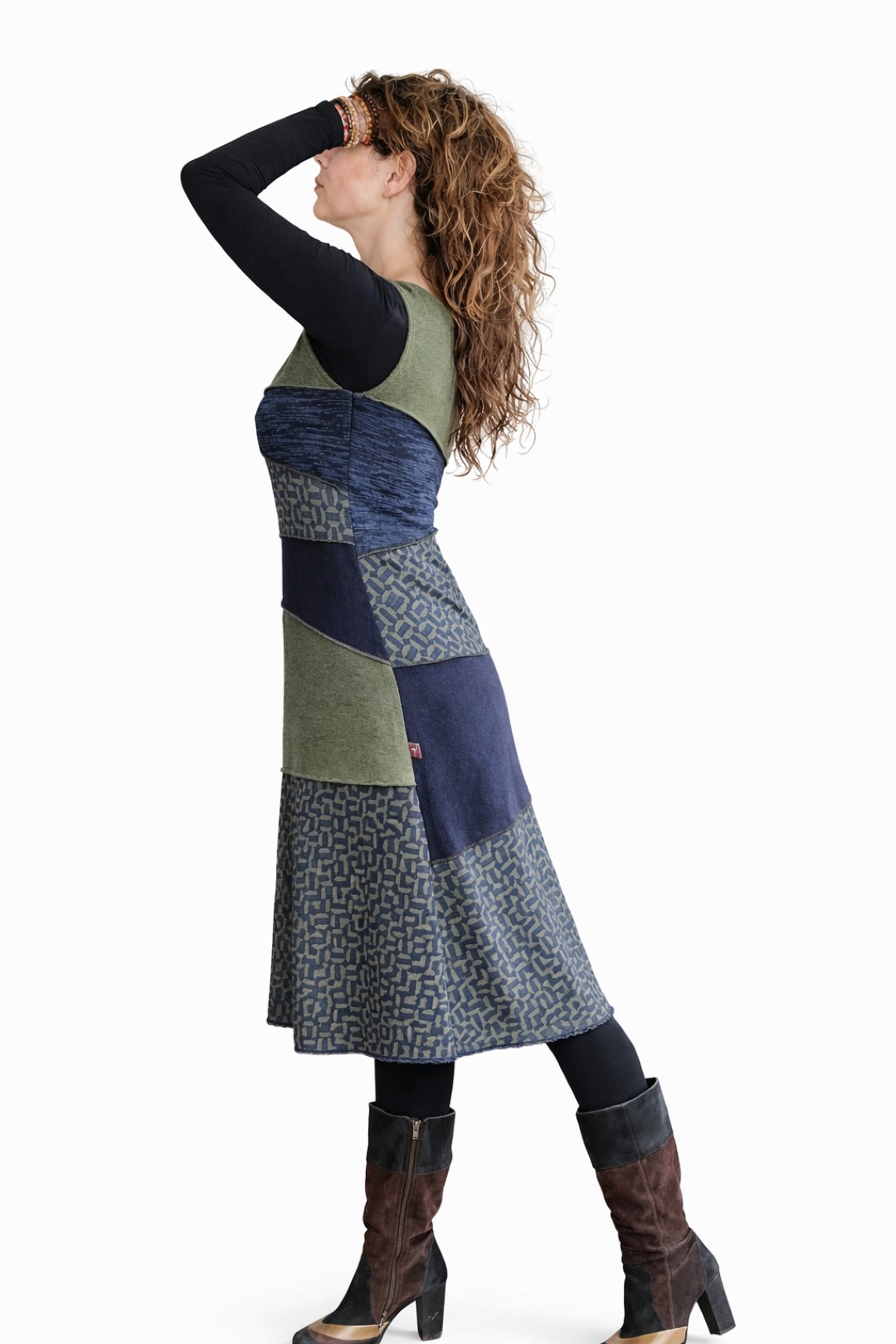 Tish draagt de energie van verbinding en zachtheid in zich. De naam staat voor samenbrengen wat op zichzelf al mooi is, maar samen een nieuw geheel vormt. Deze midi dress is een kunstig puzzelwerk van verschillende gebreide jersey’s in olijfgroen, donkerblauw en een subtiele print. Vrouwelijk van lijn, eigenzinnig van karakter en afgewerkt met een fijn kantje aan de onderzijde. Een jurk die met je meebeweegt en je omhult, met aandacht en gevoel ontworpen.